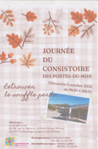 dimanche 5 octobre pas de culte dans l'ensemble journée du consistoire à St Priest dimanche 12 octobre …